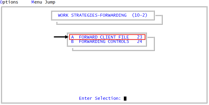 Management Strategy > Forwarding > Forward Client File (menu 10.2.23).