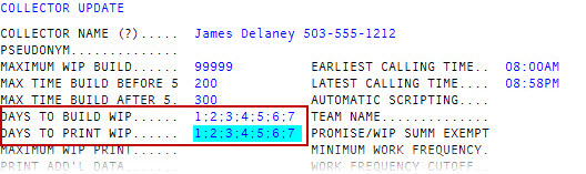 This information allows the agency to control the number of timelist items inserted into a collector's WIP by the Day-End process.