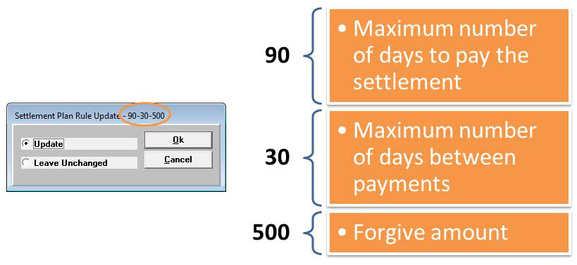 - In the Number of Settlements window, type the number of payments in which the settlement plan must be completed, and press Enter or click Ok.