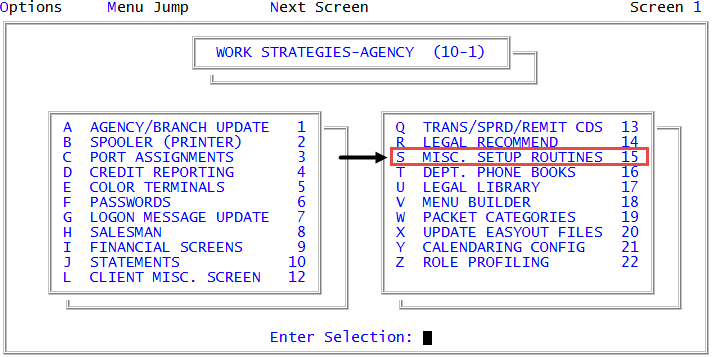 Management Strategy > Agency> Misc. Setup Routines (menu 10.1.15).