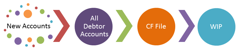 The CF file is grouped into a Work in Process (WIPs), which a list of accounts in the order to be worked by the collector (see the following figure). The Collector System allows you to configure the order in which the accounts display on the WIP.