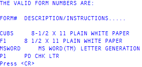 In The Valid Form Numbers Are screen, write down the form name or number from the Form # column, and press Enter.