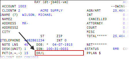 The Account Reference Line stores information the agency uses for Inquiry. It is commonly used to store the customer's drivers license number, but it can also store any other information (for example, the account's telephone number or a judgment number).