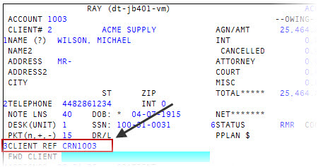 A client reference number is the number the client uses to identify the account. The number can be made up of any characters, but cannot be more than 25 characters long. If your client still uses the customer's social security number as their reference number, as a time-saving shortcut, you can enter SSN and The Collector System automatically copies the number from the social security number field.