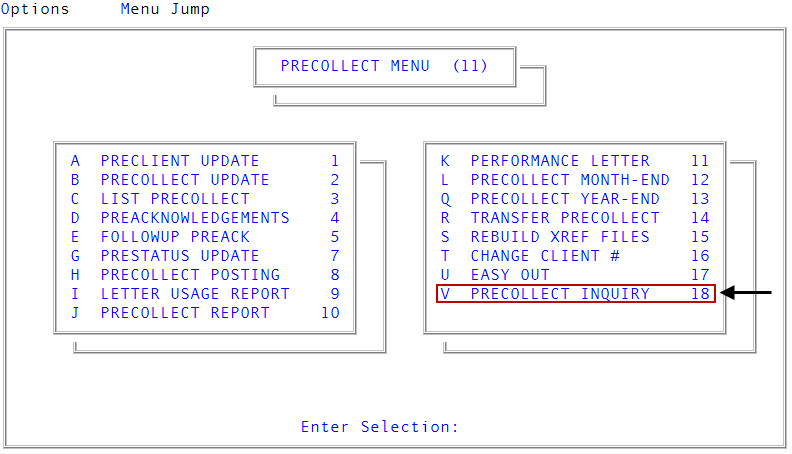 Menu 3.8 - Precollect Inquiry