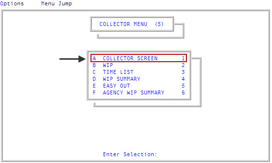 From the Master menu, navigate to Collector > Collector Screen (menu 5.1).