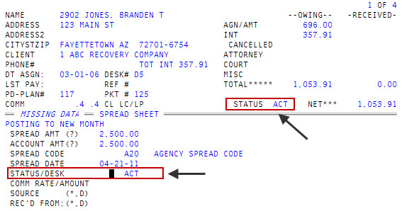 - If a commission is to be split between two collectors, or if desk assignments were changed and a commission earned by the collector formerly assigned to the desk needs to be posted, enter a temporary desk change by typing T, a period (.), and the temporary desk number. For example, T.1. The message Temp Desk# For This Transaction Only displays.