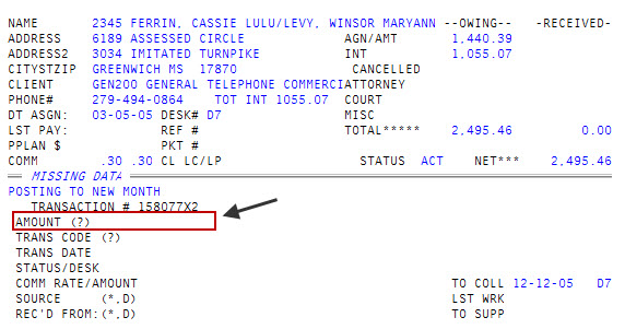 Assigned Amount window. The assigned amount (Agn/Amt field in the Owing and Received section of the screen) consists of several parts. Use this option to superimpose a window over the Owing and Received section showing the distribution of the assignment into up to 12 categories. For more information, see Viewing distribution windows. |