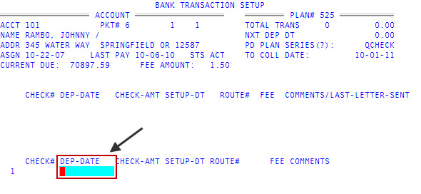 In the Dep-Date field, type the date the payment will be charged to the debit or credit card, and press Enter.
