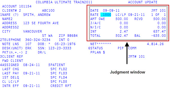 In The Collector System, you can view judgment information in two ways in the Account Update screen, the Collector screen, and the Posting screen: