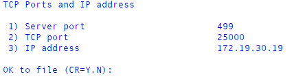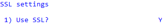 - To use SSL communication, type Y. SSL requires the Client and Server Certificate Name and Password fields be populated with settings from the Windows service. Press Enter to navigate through these fields. When done, click Ok.