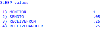 In the each field of the SLEEP values screen, type the number of seconds, and press Enter or click Ok.