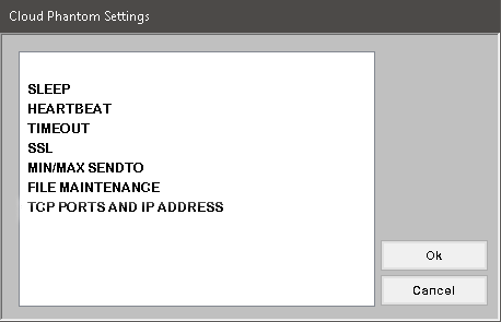 In the Cloud Phantom Administration window, select Cloud Phantom Settings, and press Enter or click Ok.