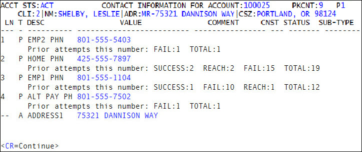 In the Personal Contacts screen, you can use command DTL to view the following information: