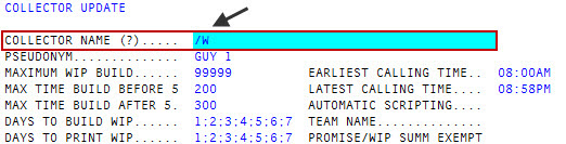 In the Collector Name field of the Collector Update screen, type /W, and press Enter.