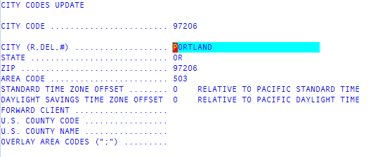 If the entry is incorrect, type the zip code associated with this city code, and press Enter.