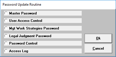 In the Password Update Routine window, select User Access Control, and press Enter or click Ok.