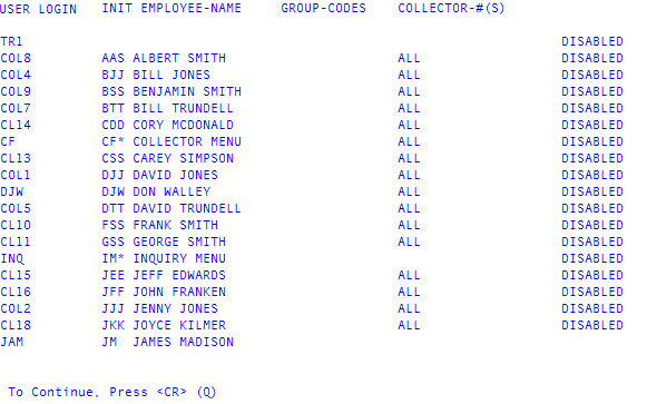 - Type Q, and press Enter to return to the Enter User Login (?) window.