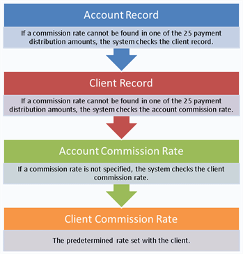 You can override a client's default commission rate by entering a different commission rate, or commission code, in the Account record; this is the account commission rate.