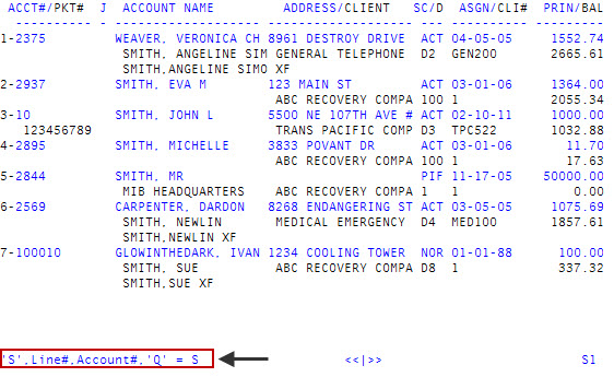 After the list of records display, at the 'S', Line#, Account#, 'Q' = prompt at the bottom of the screen, type S, and press Enter.