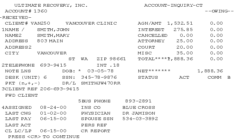 - To go back to the Account Inquiry screen, type Q. Repeat Step 4.