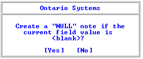 • With the Y-NULL setting, if a blank field is updated, a note will not be made. But if a populated field is changed, a note containing the old value is created.