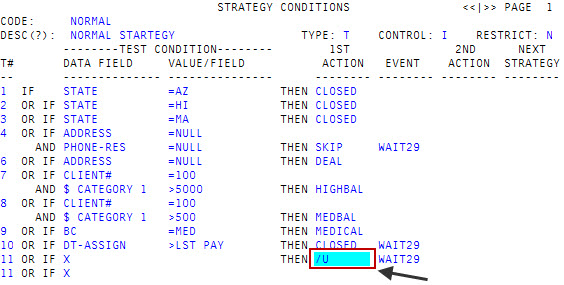 - After you have updated the Strategy Conditions screen, type # in any field, and press Enter.