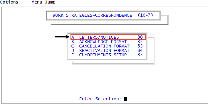 Management Strategy > Correspondence > Letters/Notices (menu 10.7.80).