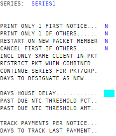 To apply the notice series to only a subset of members of a packet and their corresponding accounts, type Y, and press Enter.