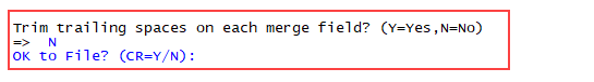 - To delete any trailing spaces located at the end of a merge field, type Y, then press Enter.