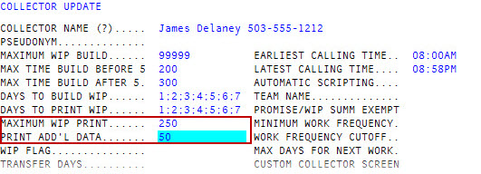This information allows the agency to control the number of timelist items inserted into a collector's WIP by the Day-End process.