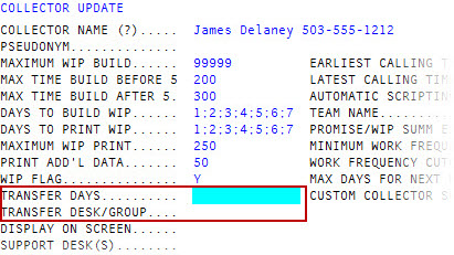 - To allow the collector to send accounts to a support desk, type the support desk number (for example, *S1), and press Enter.