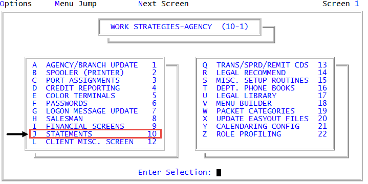 Management Strategy > Agency > Statements (menu 10.1.10). - Select Additional Statement Formats, and press Enter or click Ok.