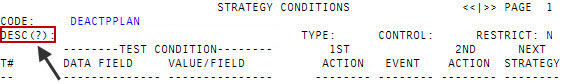 5. In Desc(?) field of the Strategy Conditions screen, type a descriptive name for the strategy, and press Enter.