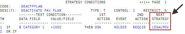 For details on how the Strategy Condition screen works, see Menu 10.3.25 - Account Strategy.