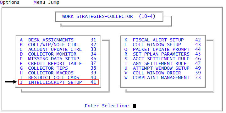 Management Strategy > Collector > Intelliscript Setup (menu 10.4.41).