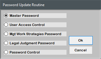 In the Password Update Routine window, select User Access Control, and press Enter or click Ok.