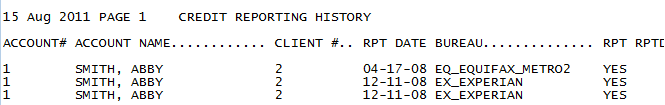 - The date the account reported to the credit reporting agency (Report date or RPT date)