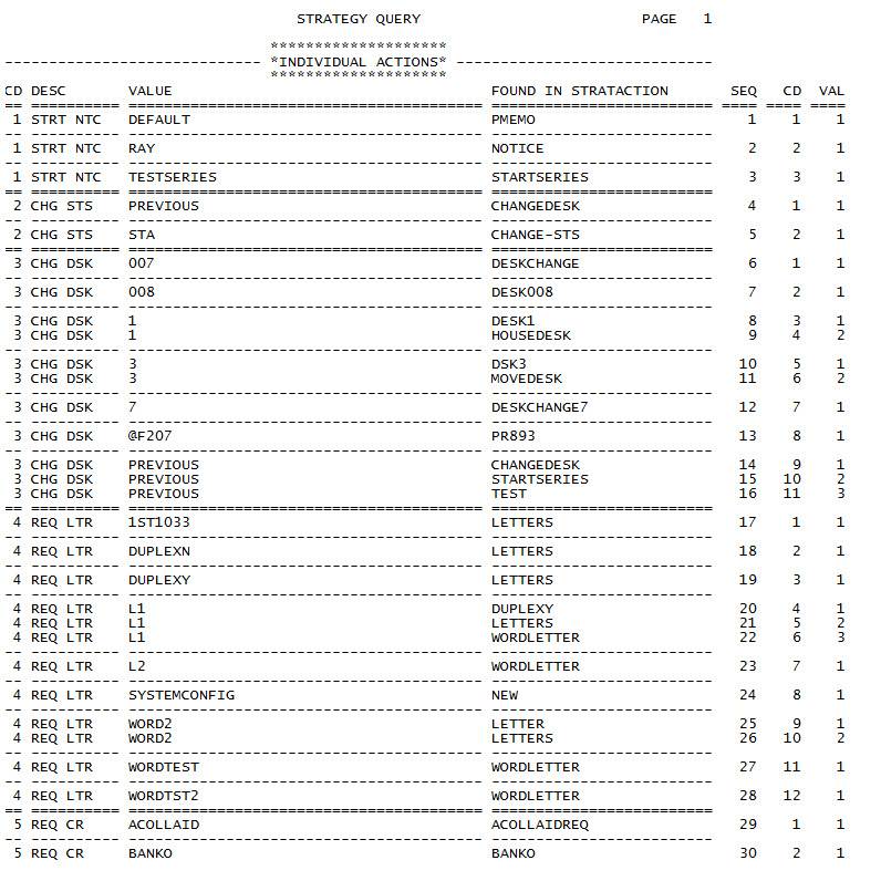 Use this report to search for a specific action or event. The Strategy Query report lists all of the strategies, action sets, and event sets an action or event is found in.