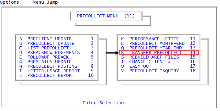 Precollect > Performance Letter (menu 11.11). - At the This program will print a Performance Letter for precollect clients. OK to continue?, to continue, press Enter or click Ok.