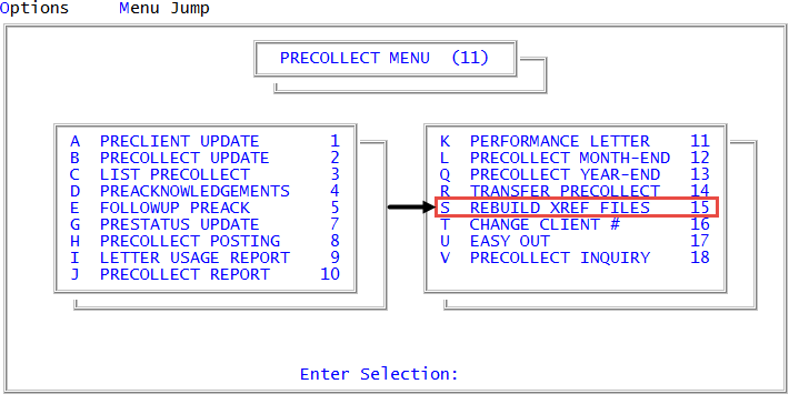 Use this option to rebuild cross-reference files after deleting precollect accounts.
