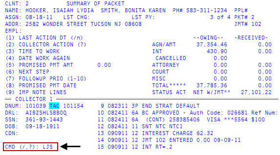 - To move the cursor to the Judgment window to change amounts, type LJ. For more information regarding the fields in this window, see Opening new judgments using command L J.
