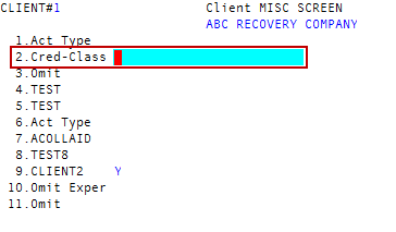 In the Client Misc screen, in the Cred-Class field, type one of the codes in the following table to classify the creditor, and press Enter.To specify this kind of creditor: