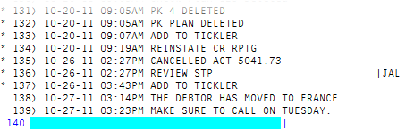 You may see an alert that a record is locked. This indicates that another user has the account open. The system displays a prompt with the user's initials. For a full list of the commands available at this prompt, see Working the Account# prompt options.