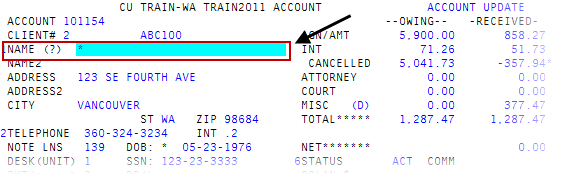 - From the Master menu, navigate to Data Entry > Account Update (menu 1.1).