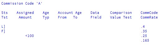 Commission codes are represented by a letter (A, B, C, and so on.). For more information see Menu 10.5.51 - Commission.