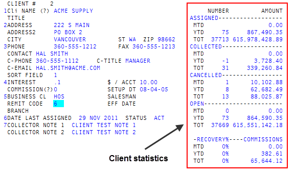 The Collector System automatically calculates, enters, and updates the fields in the Client Statistics section. You cannot edit these fields directly.