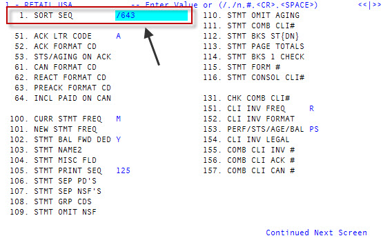 In line 1, type /643 to advance to field 643, and press Enter. -