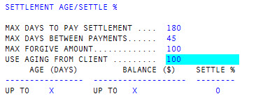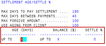 The default for this field is X, which means any account with any balance qualifies for a settlement.