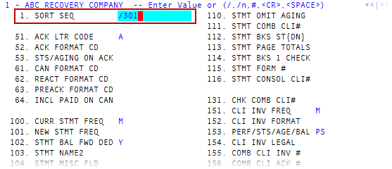 In the Sort Seq field (line 1), type /301, and press Enter.